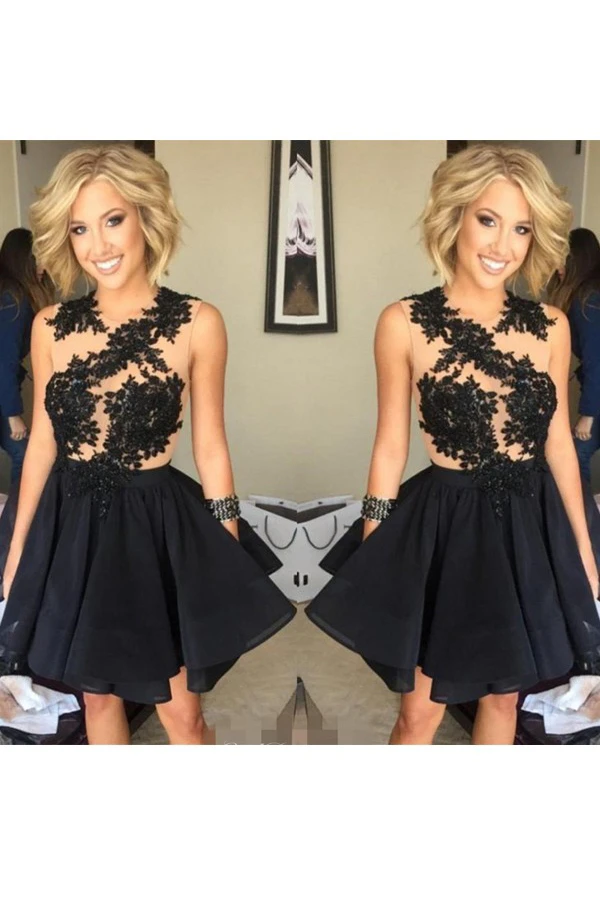 A-line Sleeveless Chiffon Lace Jewel Short Mini Homecoming Dress