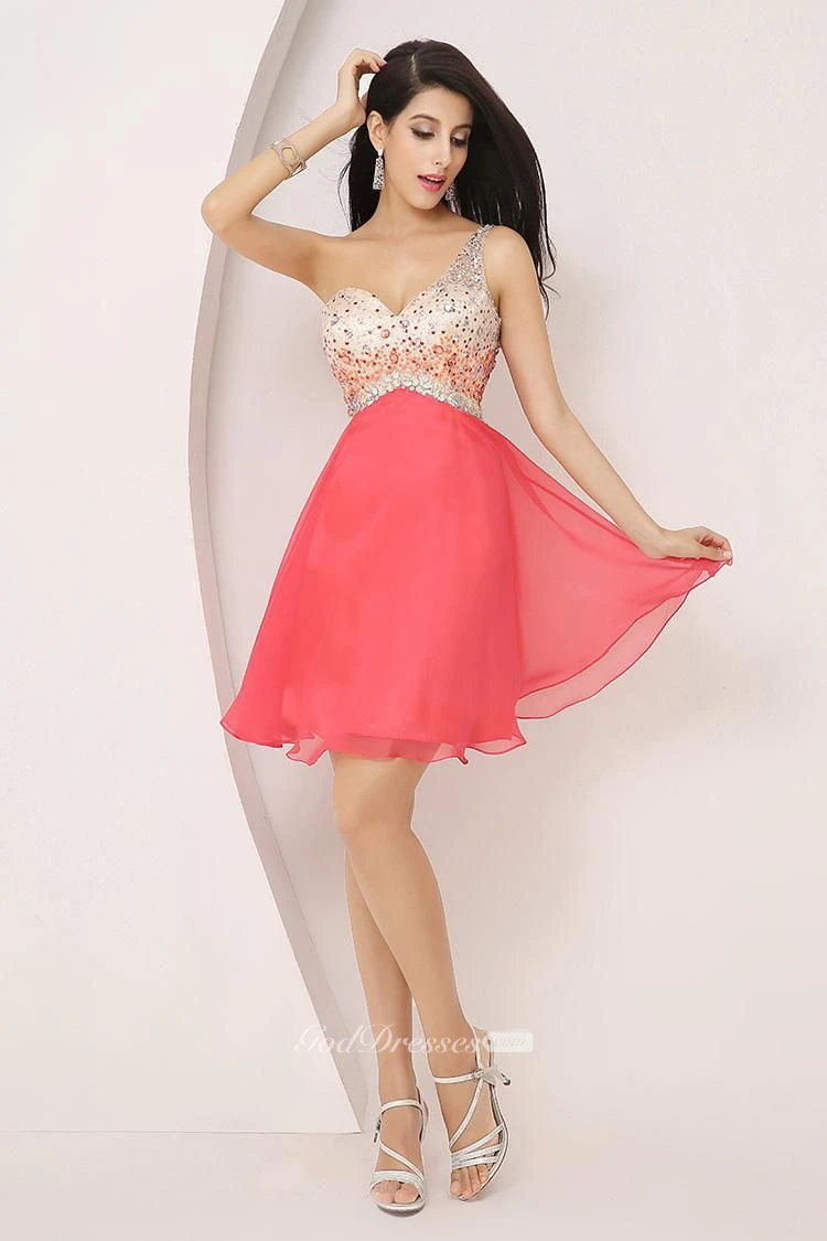 A-line Sleeveless Chiffon One-shoulder Straps Short Mini Homecoming Dress