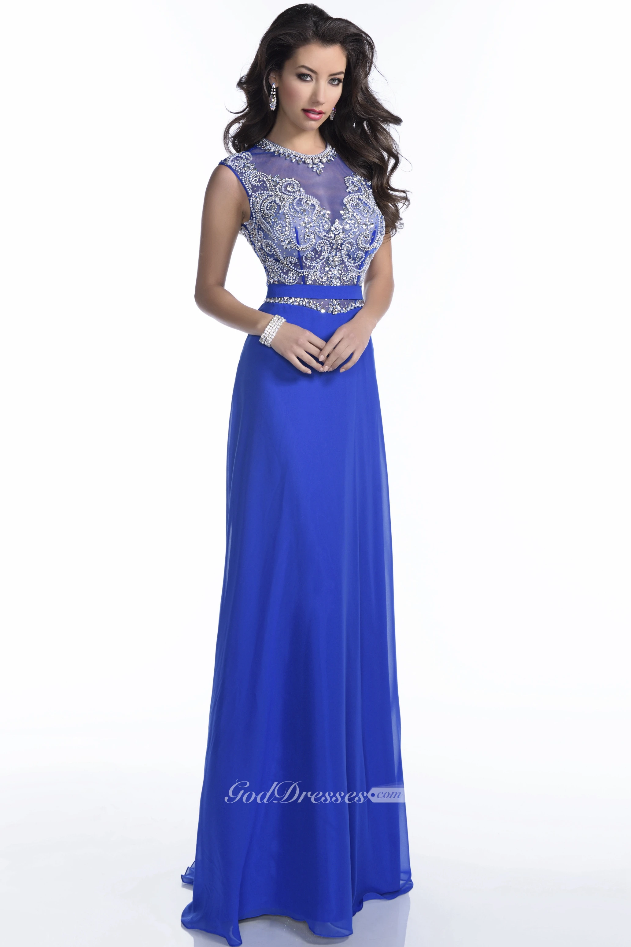 A-Line Sleeveless Chiffon Prom Dress Featuring Jeweled Waistline And Appliques