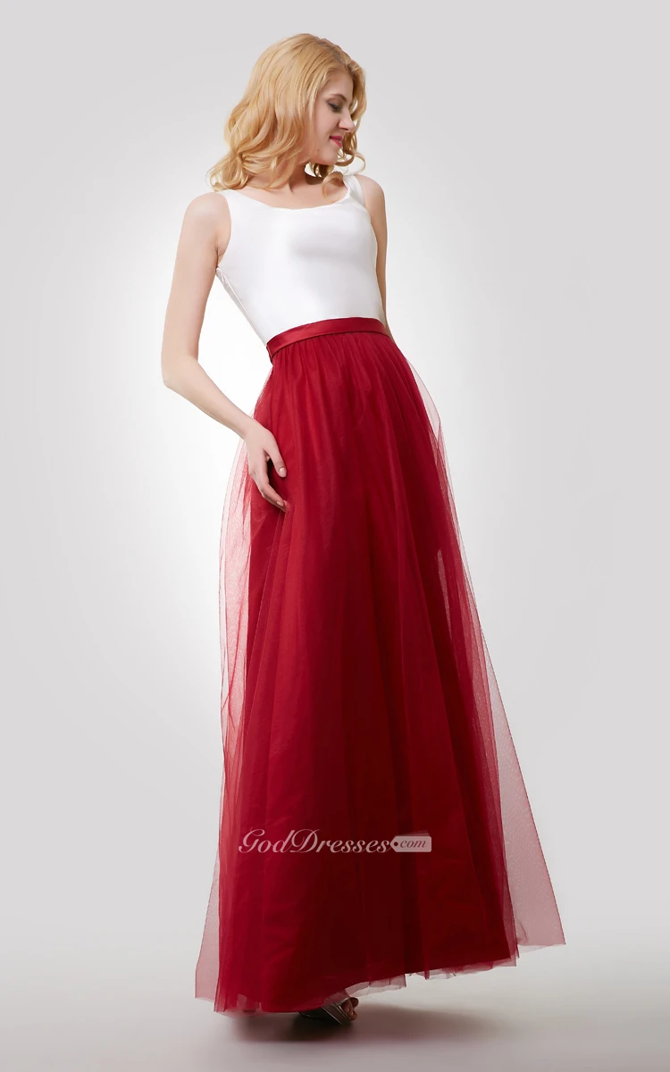 A-Line Sleeveless Color Blocking Dress With Tulle Skirt and Bateau Neck