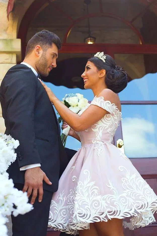 A-line Sleeveless Lace Off-the-shoulder Zipper Short Mini Homecoming Dress