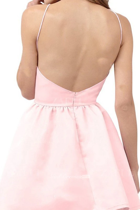 A-line Sleeveless Satin Halter Backless Zipper Straps Short Mini Homecoming Dress