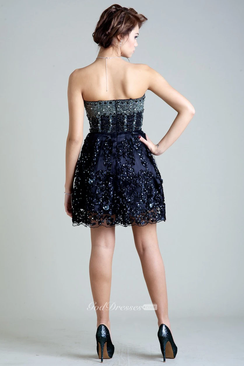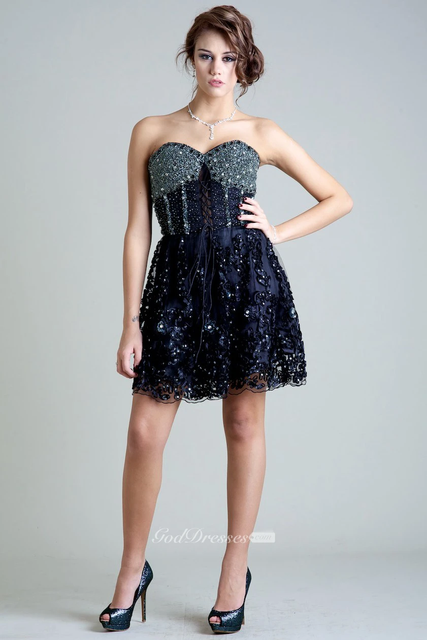 A Line Sleeveless Sweetheart Beaded Short Mini Prom Dress With Appliques