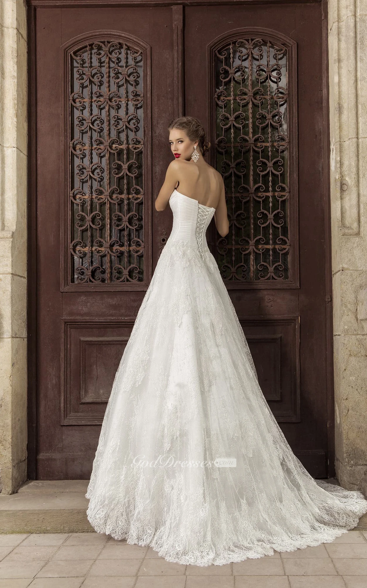 A-line Sleeveless Sweetheart Lace-up Back Lace Dress