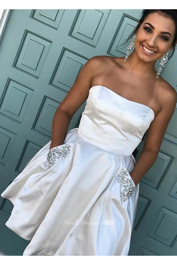 A-line Sleeveless Taffeta Strapless Zipper Short Mini Homecoming Dress