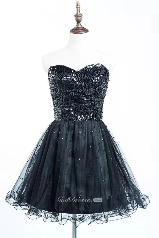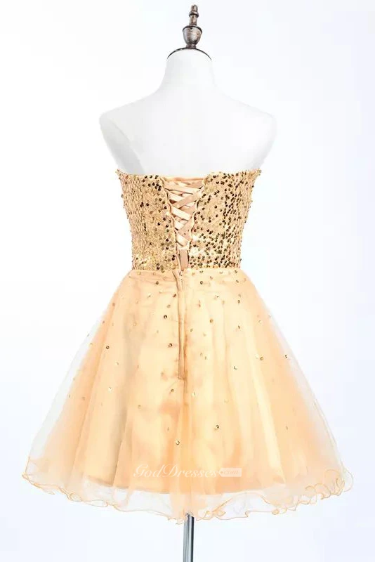 A-line Sleeveless Tulle Sequins Sweetheart Lace-up Short Mini Homecoming Dress