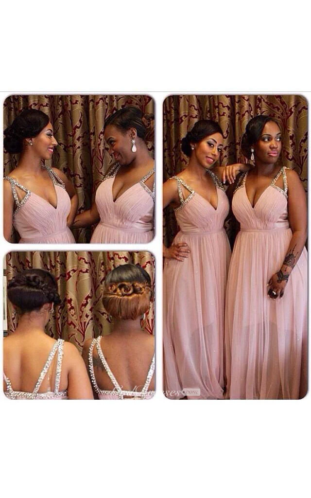 A-line Sleeveless V-neck Long Chiffon Dress with Sequins