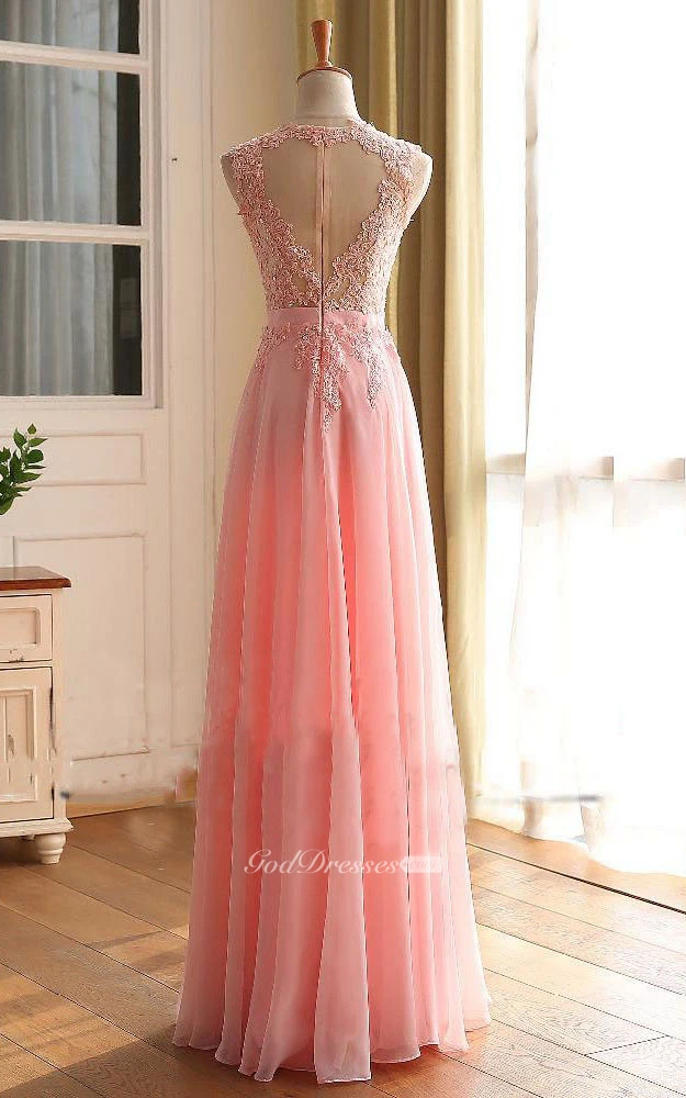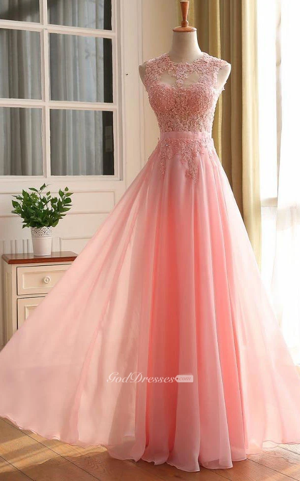 A-line Sleeveless Zipper Back Chiffon Lace Dress