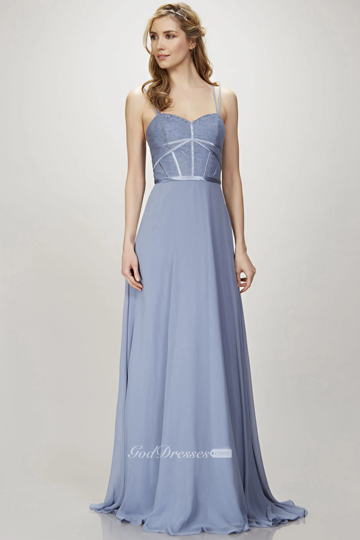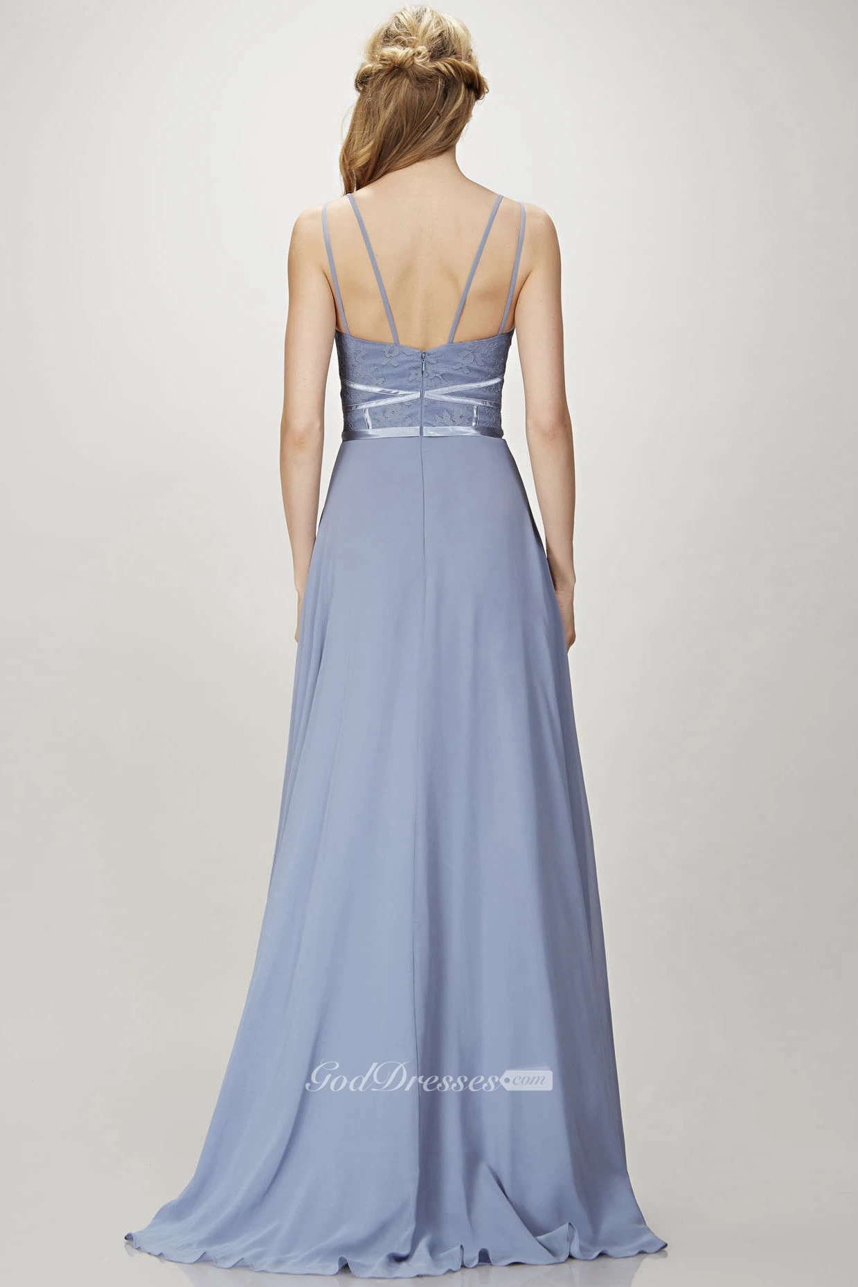 A-Line Spaghetti Appliqued Floor-Length Sleeveless Chiffon Bridesmaid Dress With Zipper Back