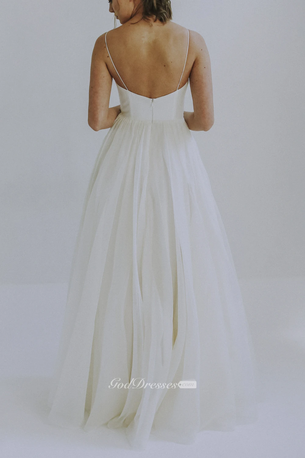 A-line Spaghetti Straps Sexy Wedding Dress With Tulle