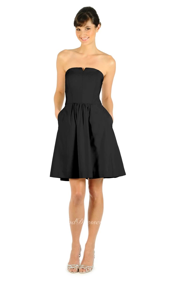 A-Line Strapless Short Simple Dress With Notched Neckline
