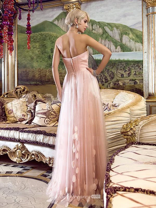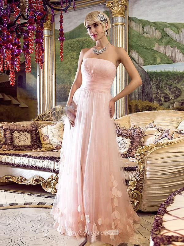 A-line Strapless Sleeveless Floor-Length Tulle Applique Dresses