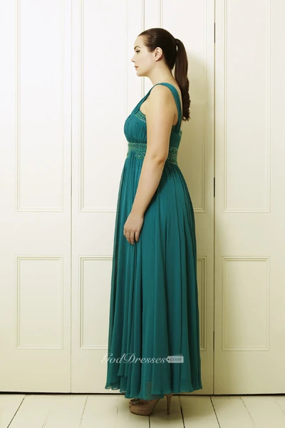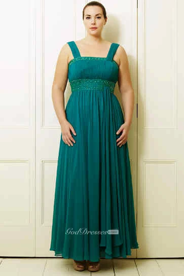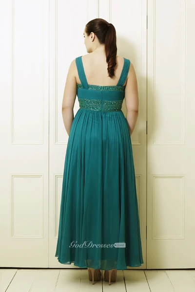 A-Line Strapped Beaded Ankle-Length Sleeveless Chiffon Plus Size Prom Dress With Pleats