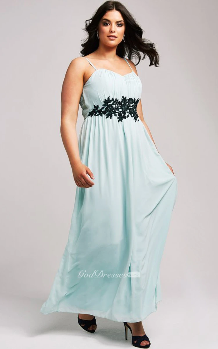 A-Line Straps Chiffon Gown With Embroidery Waist
