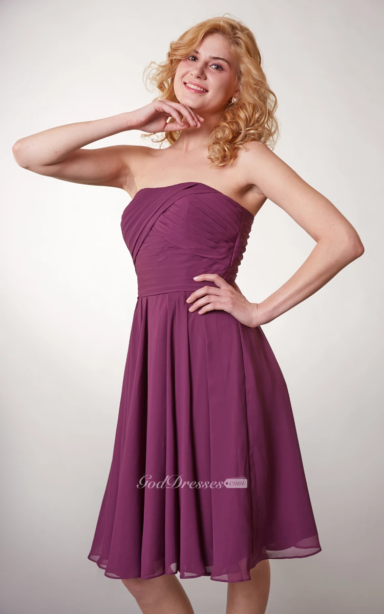 This short chiffon bridesmaid dress with strapless pattern looks good in all the colors. I like the range of color options. I ordered three in different colors because I would like to wear the dress for other occasions too. I wore the purple one at my friend's wedding and it got me lots of compliments. This dress is so easy to wear and comfortable. It provides all day comfort too. Short length is both cool and stylish. I love the dresses and waiting to wear them all.