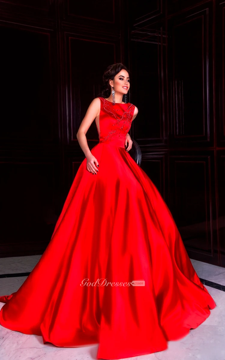 A-Line Sweep High-Neck Short Sleeve Satin Pleats Beading Zipper Dress