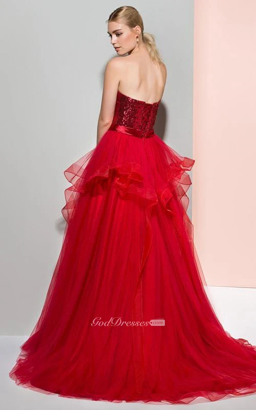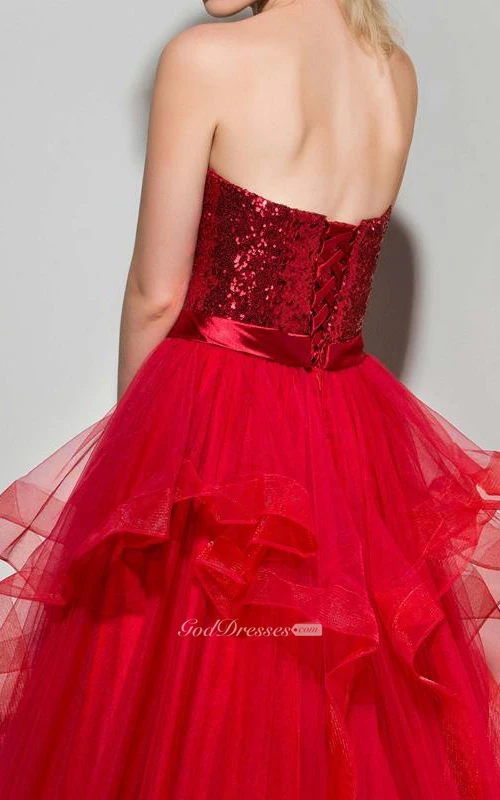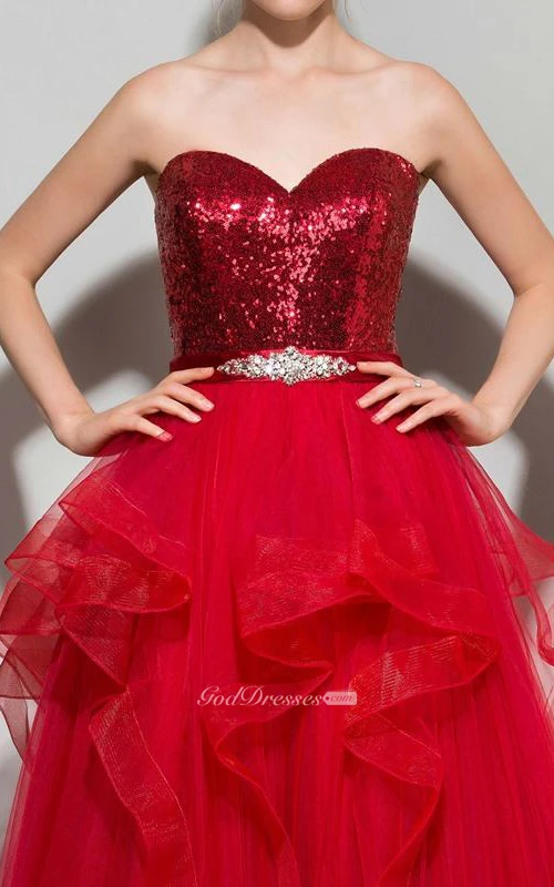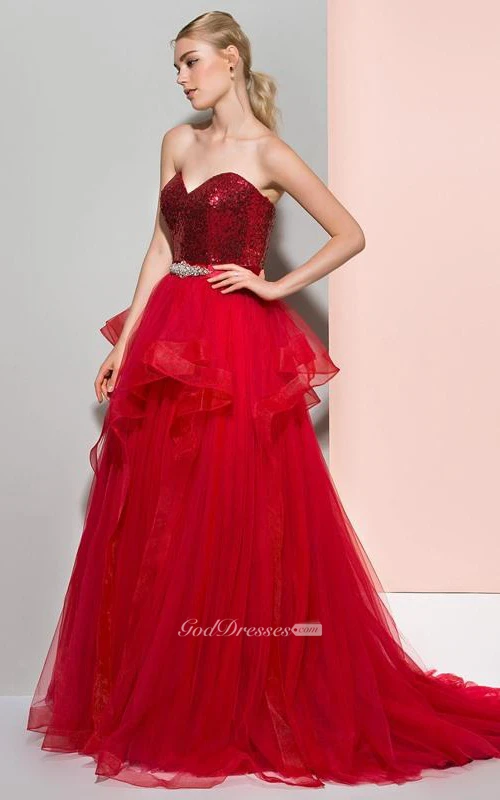 A-Line Sweetheart Beading Sequins Court Train Prom Dress