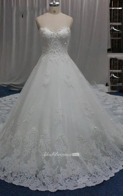 A-Line Sweetheart Bell Beading Appliques Chapel Train Backless Zipper Corset Back Chiffon Tulle Lace Sequins Organza Satin Taffeta Dress