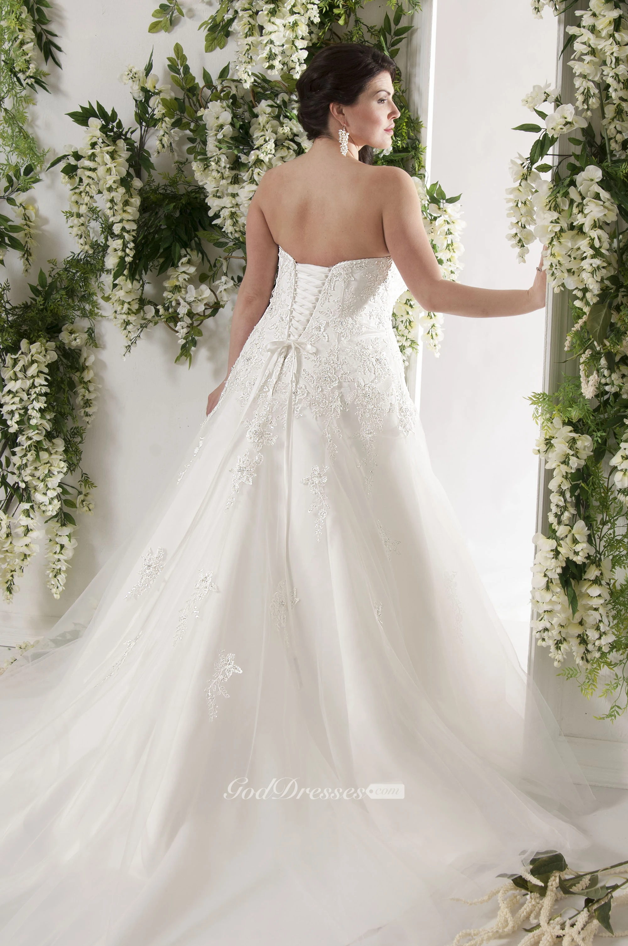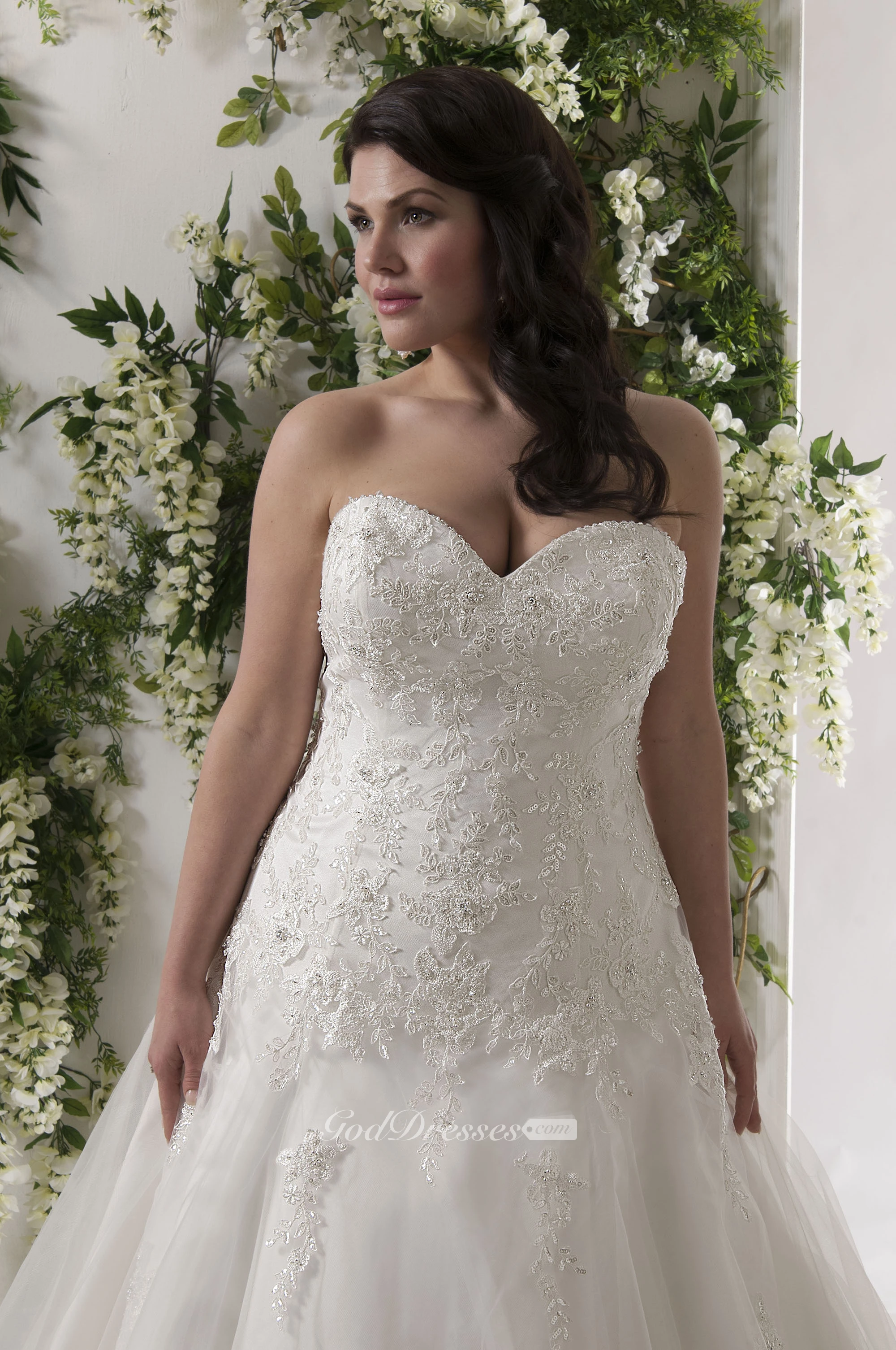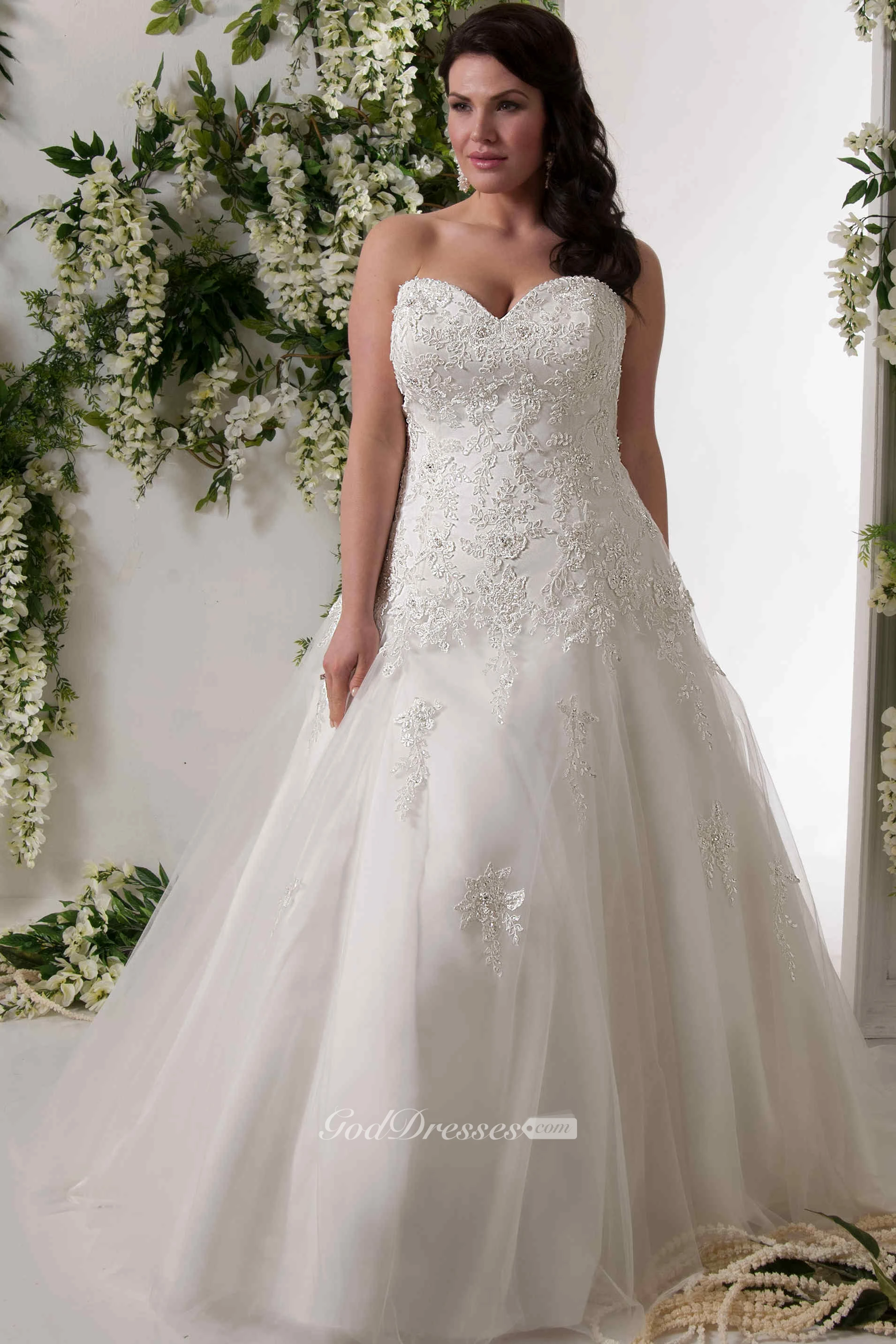 A-Line Sweetheart Lace&Tulle Plus Size Wedding Dress With Lace Up