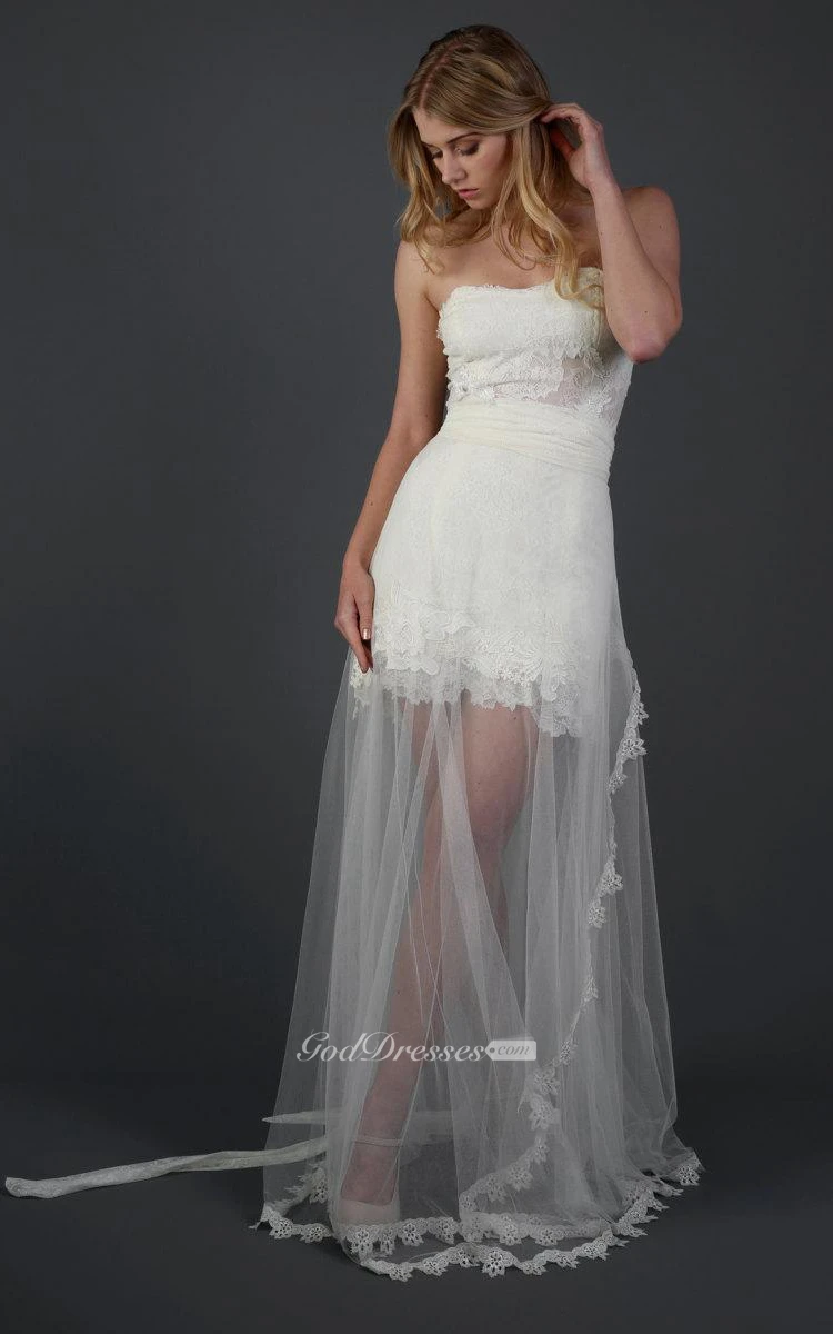 A-Line Sweetheart Lace Dress With See-Through Tulle Skirt