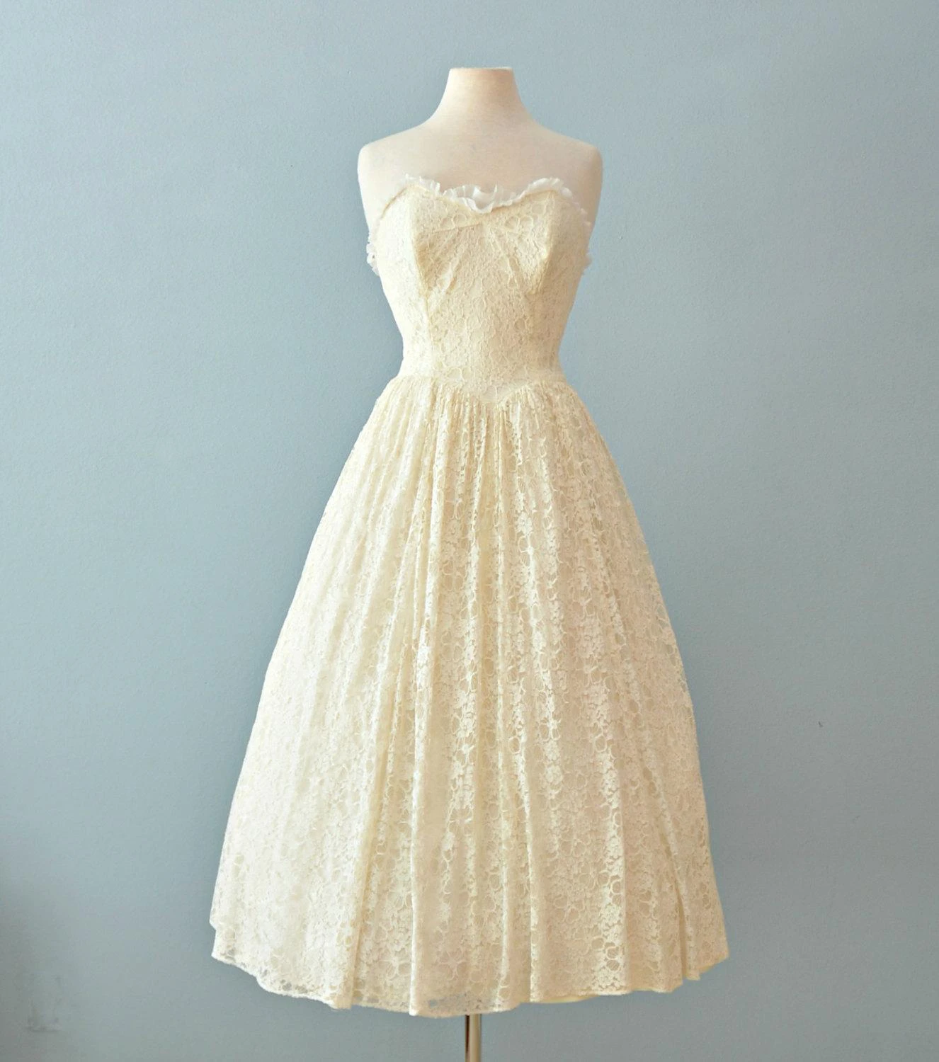 A-Line Sweetheart Lace Sleeveless Knee Length Dress With Pleats