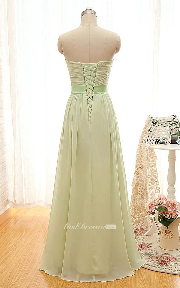 A-line Sweetheart Sleeveless Sash Corset Back Chiffon Dress