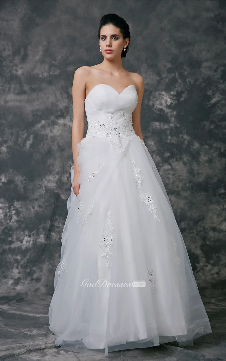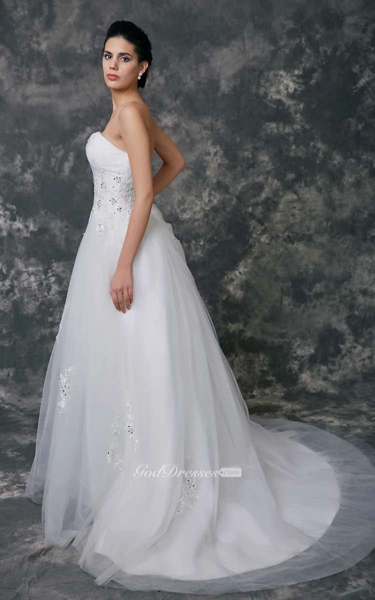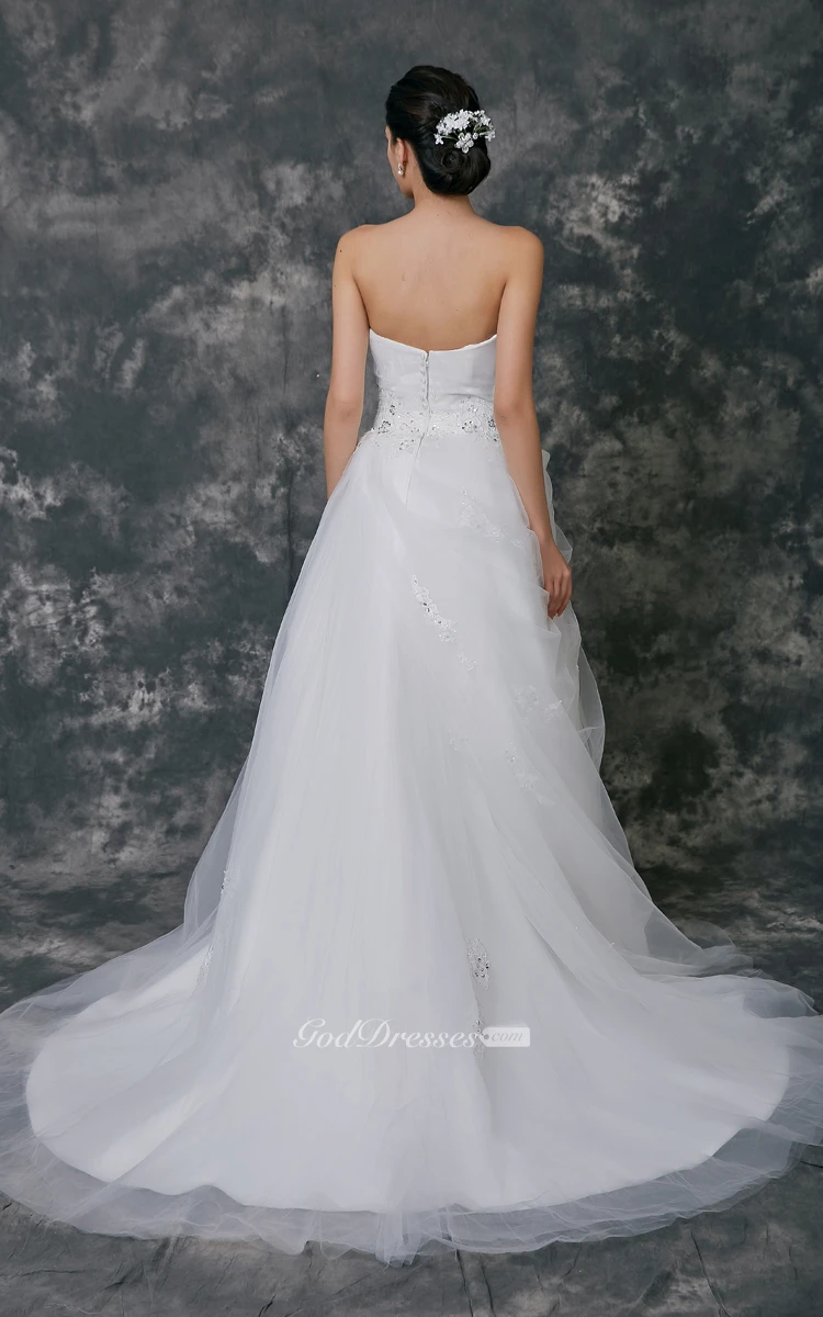 A-Line Sweetheart Strapless Tulle Dress With Beaded Lace Appliques