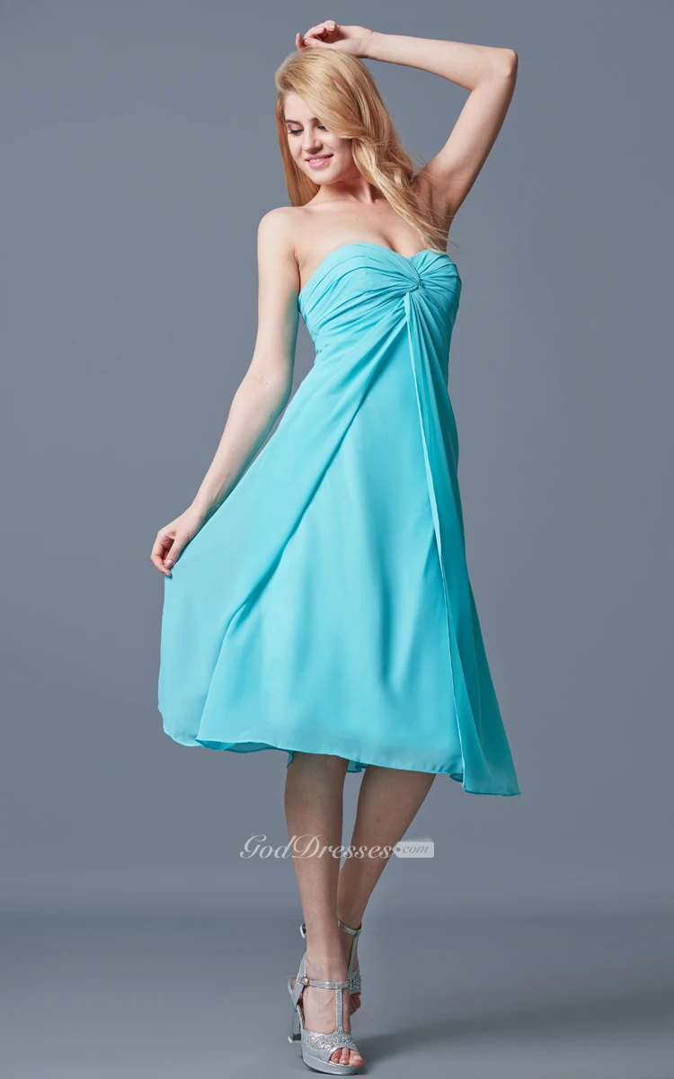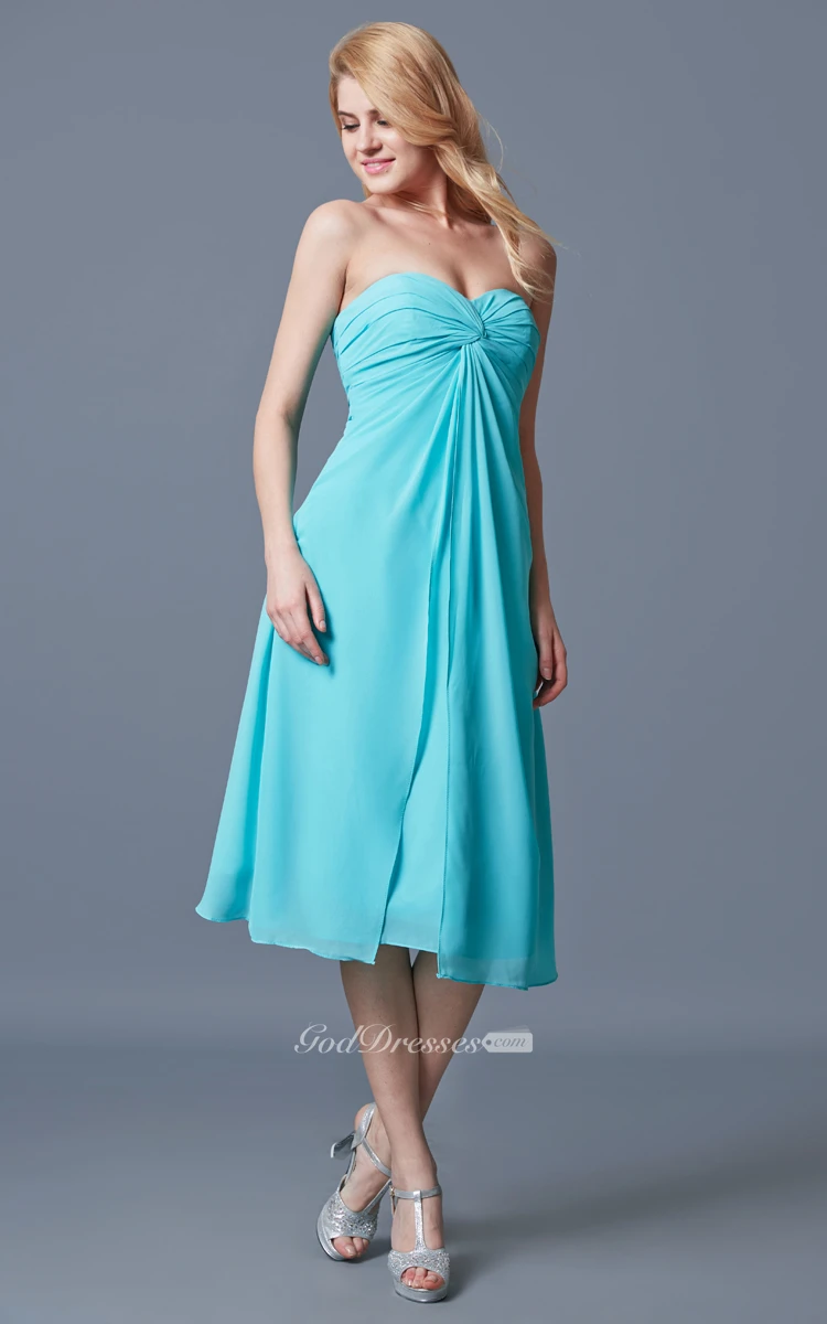A-line Sweetheart Tea Length Chiffon Dress With Ruching