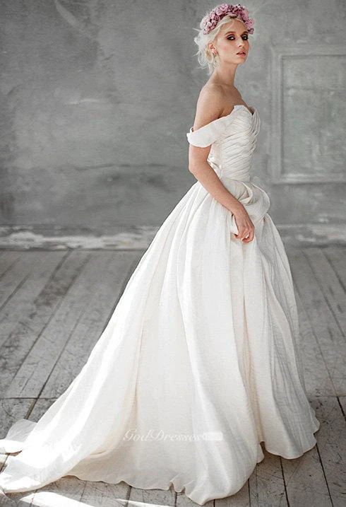 A-Line Taffeta Off-Shoulder Sweetheart Gown With Ruching and Beading