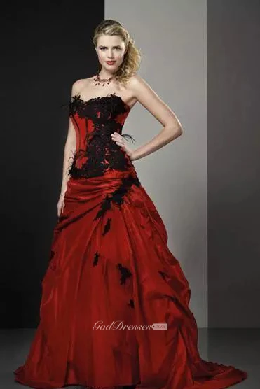 A-Line Taffeta Sweetheart Sleeveless Sweep Train Wedding Dress with Appliques and Cascading Ruffles