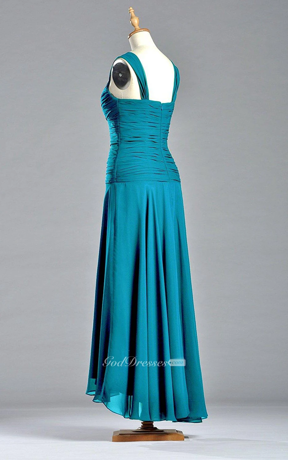 A-line Tea-length Dress with Zipper Detail and Ruches