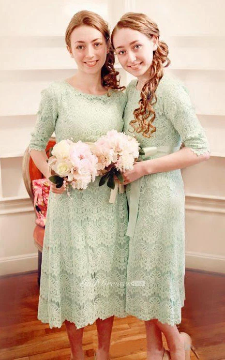 A-line Tea-length Half Sleeve Zipper Lace Dress
