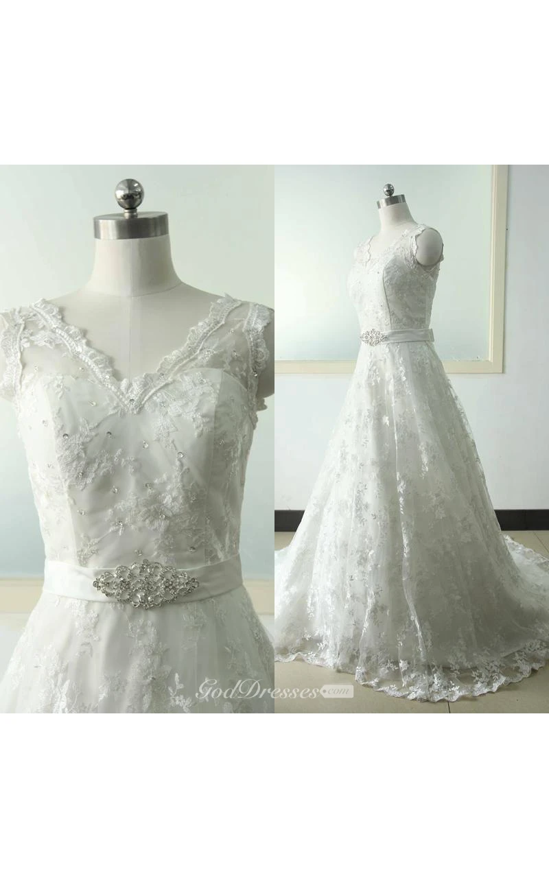 A-Line Tea-Length V-Neck Sleeveless Flower Zipper Lace-Up Back Chiffon Tulle Lace Satin Dress