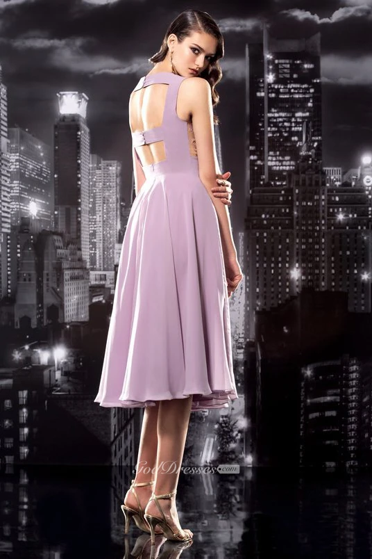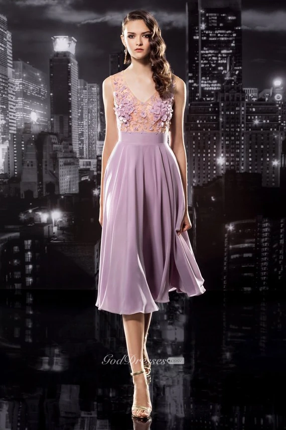 A-Line Tea-Length V-Neck Sleeveless Jersey Keyhole Dress With Appliques