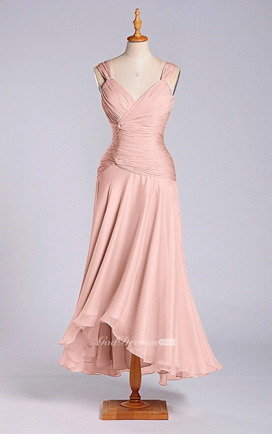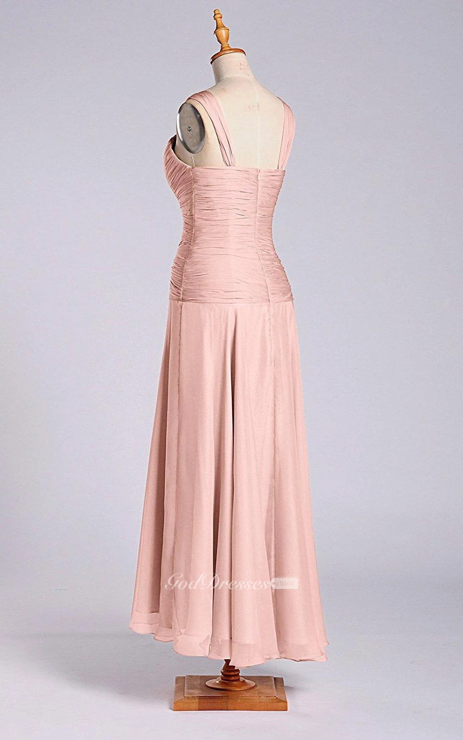 A-line Tea-length Zipper Chiffon Dress with Ruched Bodice