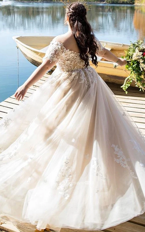 A Line Tulle Off-the-shoulder Casual Wedding Dress with Appliques