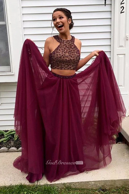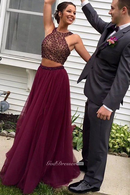 A-Line Two Piece Chiffon High Neck Sleeveless Zipper Dress