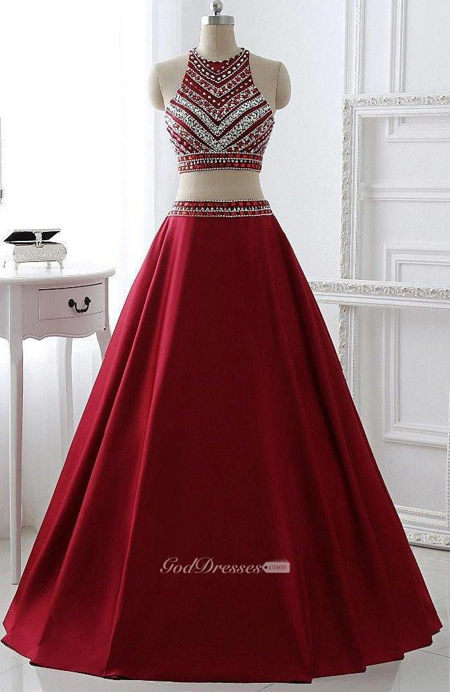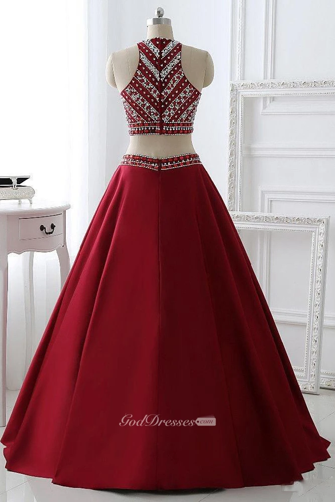 A-Line Two Piece Satin High Neck Sleeveless Zipper Dress