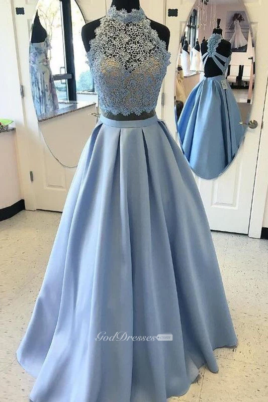 A-Line Two Piece Satin Lace Sweetheart Sleeveless Straps Dress