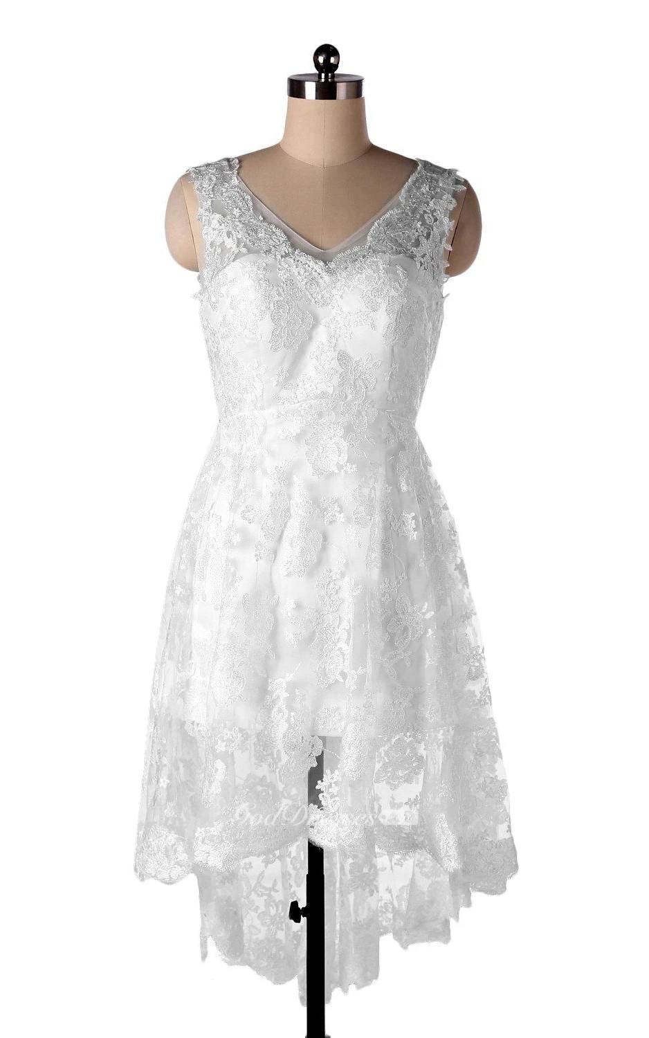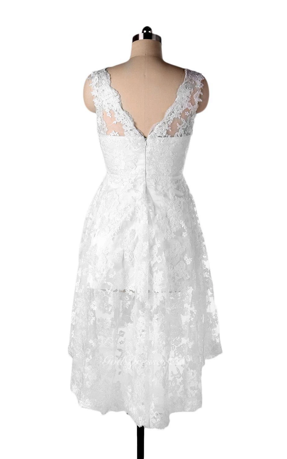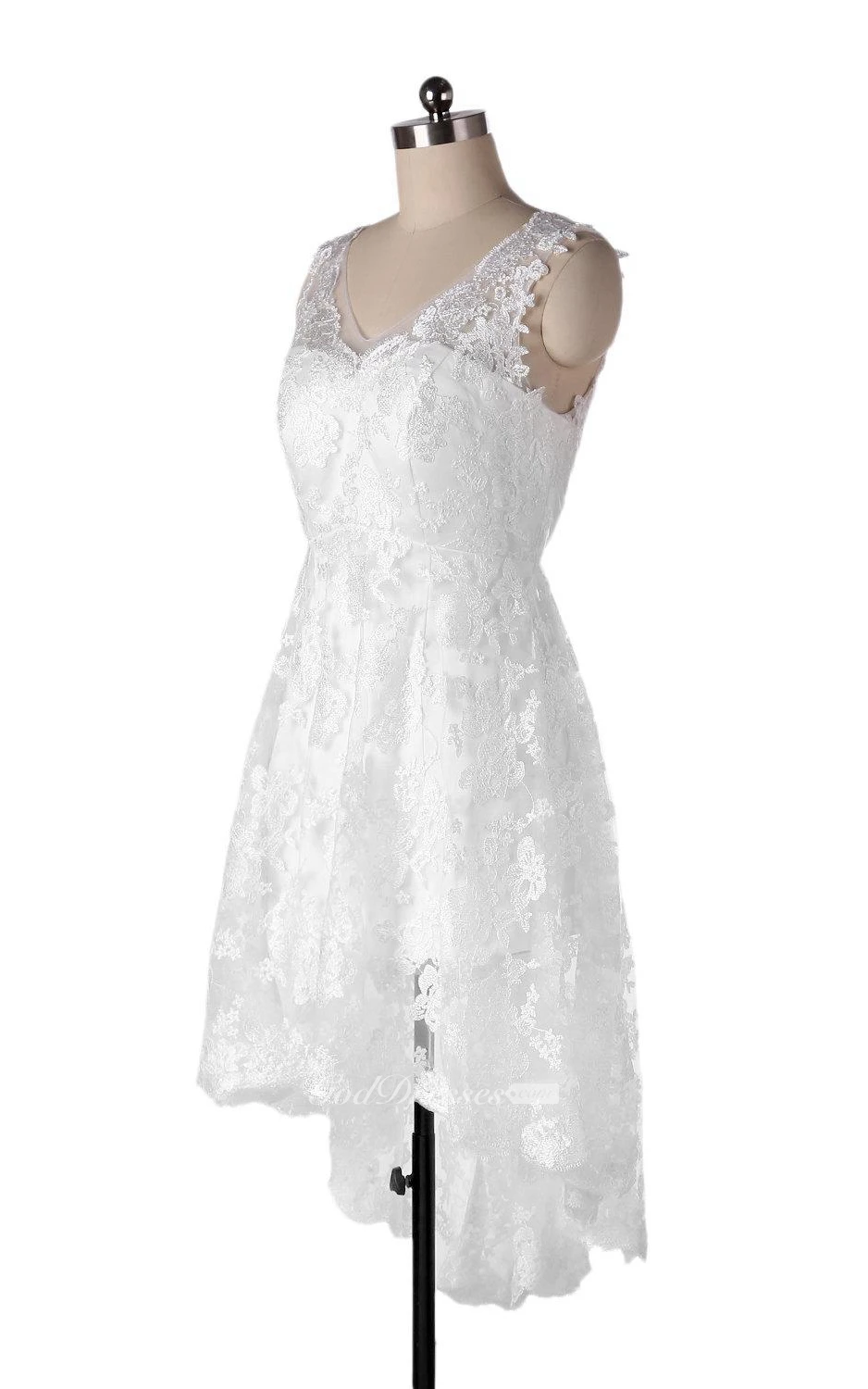 A-Line V-Neck Backless Chiffon Lace Weddig Dress