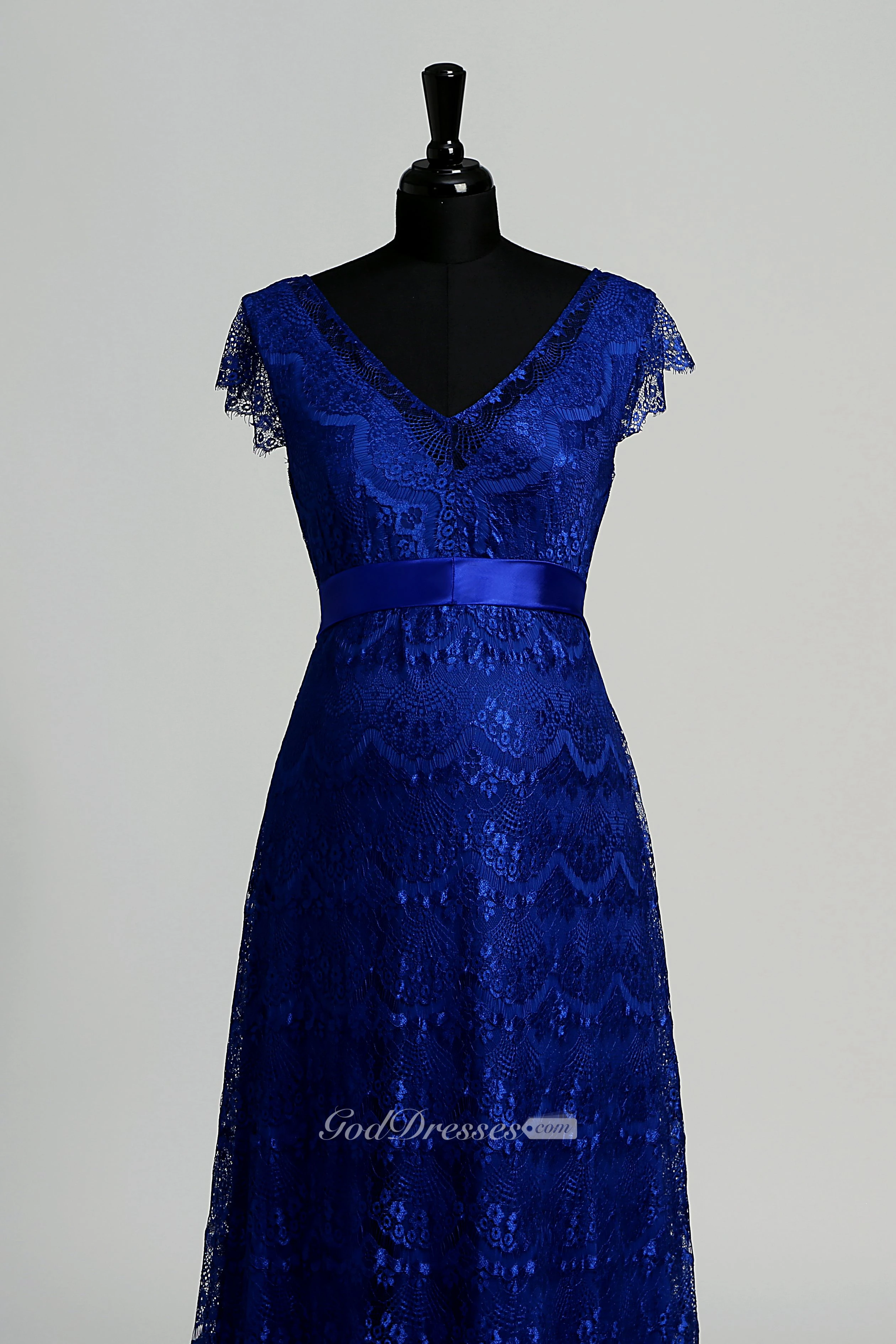 A-line V-neck Cap Short Sleeve Floor-length Lace Maternity Dress with Sweep/Brush Train