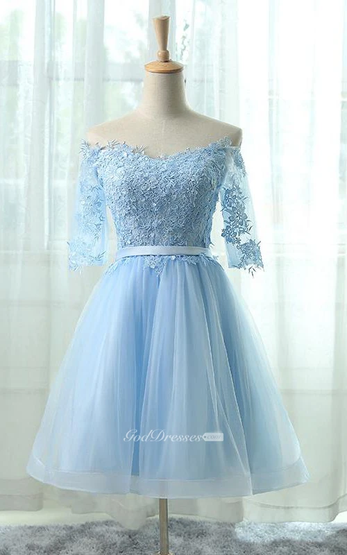 The dress shipped quick and looks beautiful, as pictured. Love the tulle and lace material, and cut! Just as described! Can't wait to wear it for my party. The seller is easy to communicate with. Very satisfied. And shipping was quick!,,,