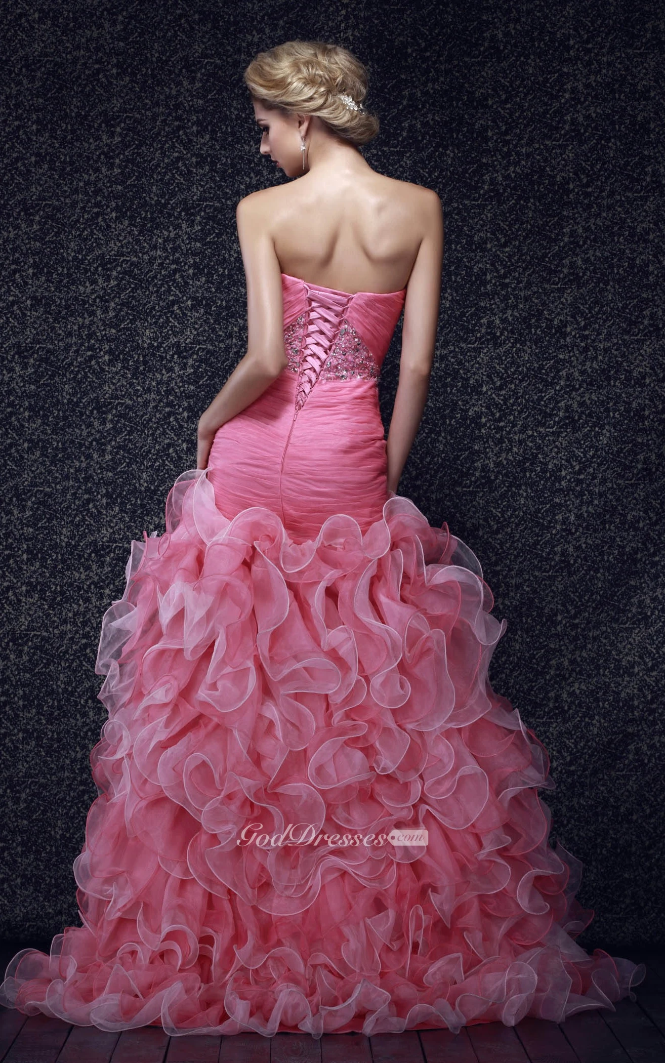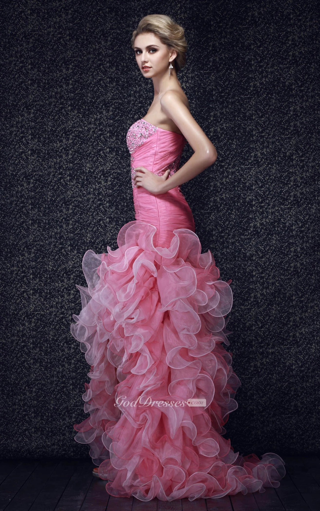 Adorable Strapless Front-Split Ruffled Dress With Gemmed Bodice