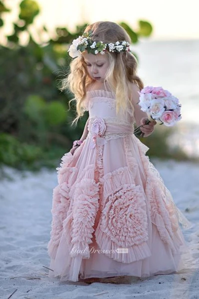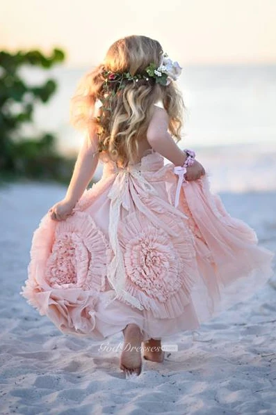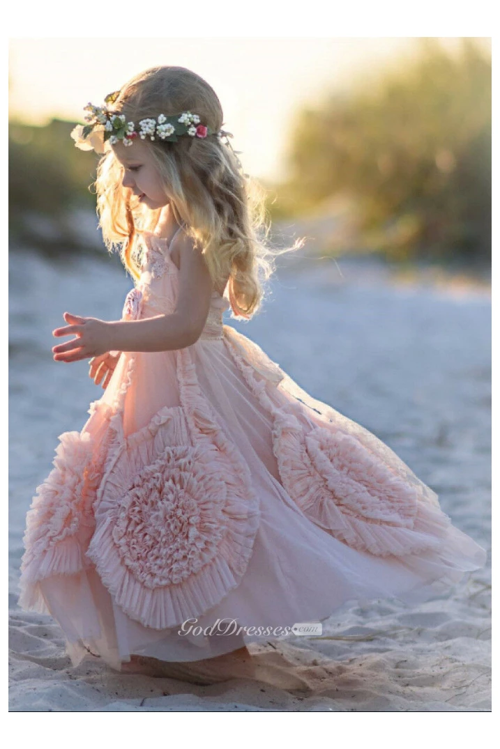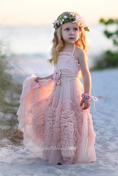 Adoring Floor length Spaghetti Floor Lenhth Flower Girl Dress with Handmade Flowers