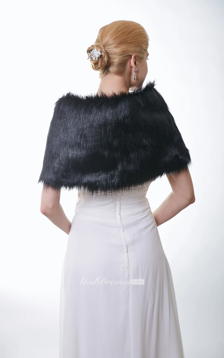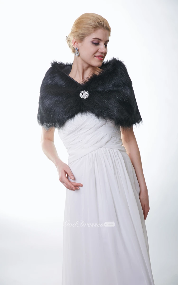 All Black Faux Fur Bridal Wrap With Crystal Brooch