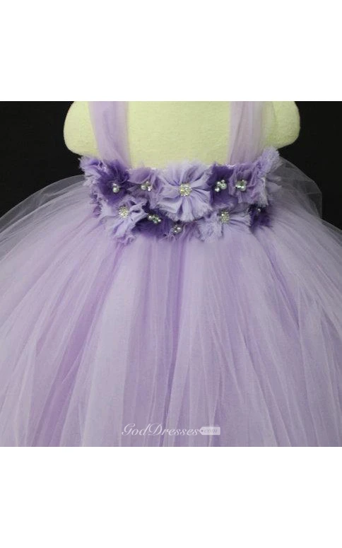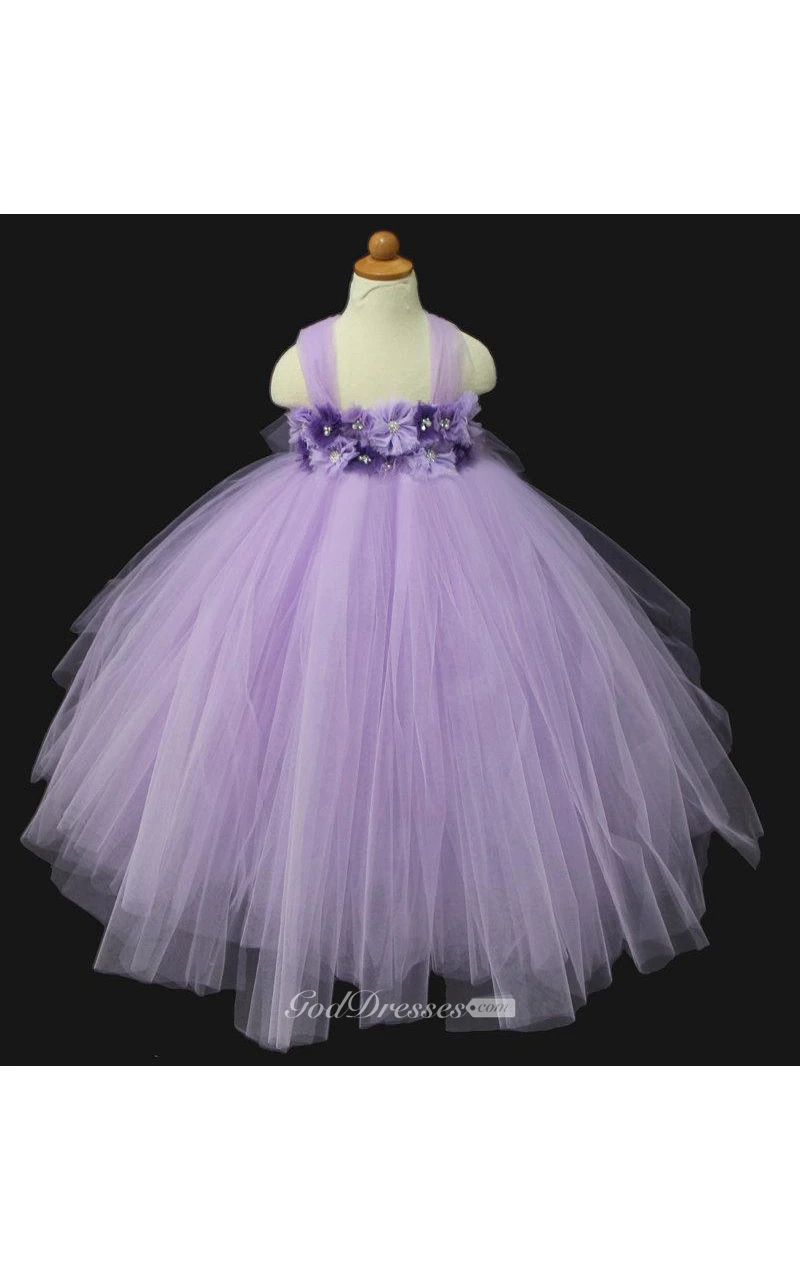 Allover Tulle Floral Bodice Empire Ball Gown With Beadings