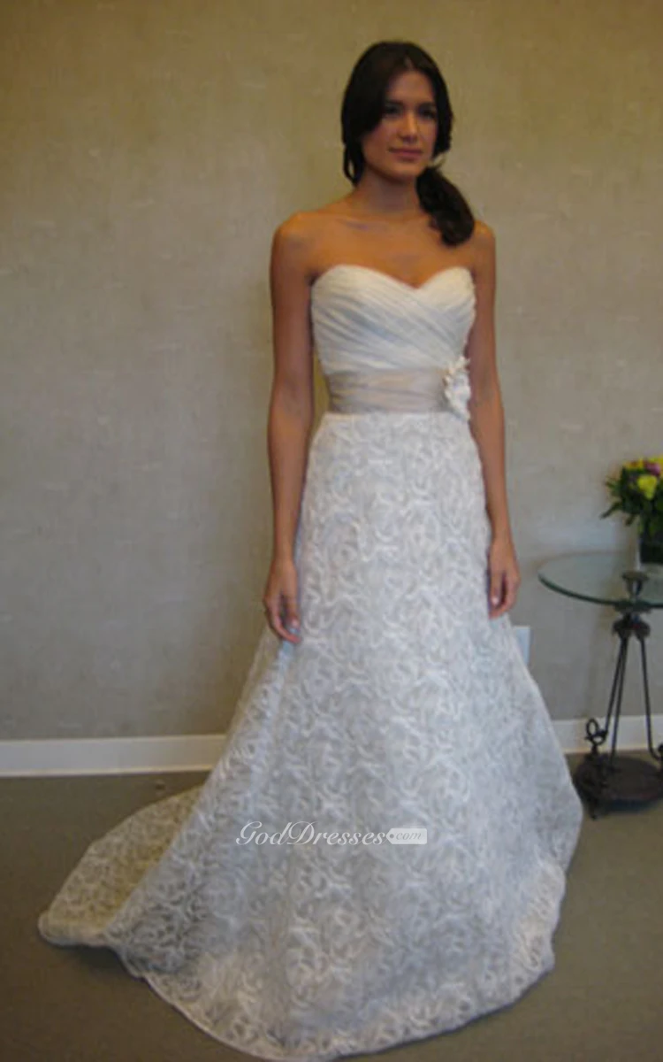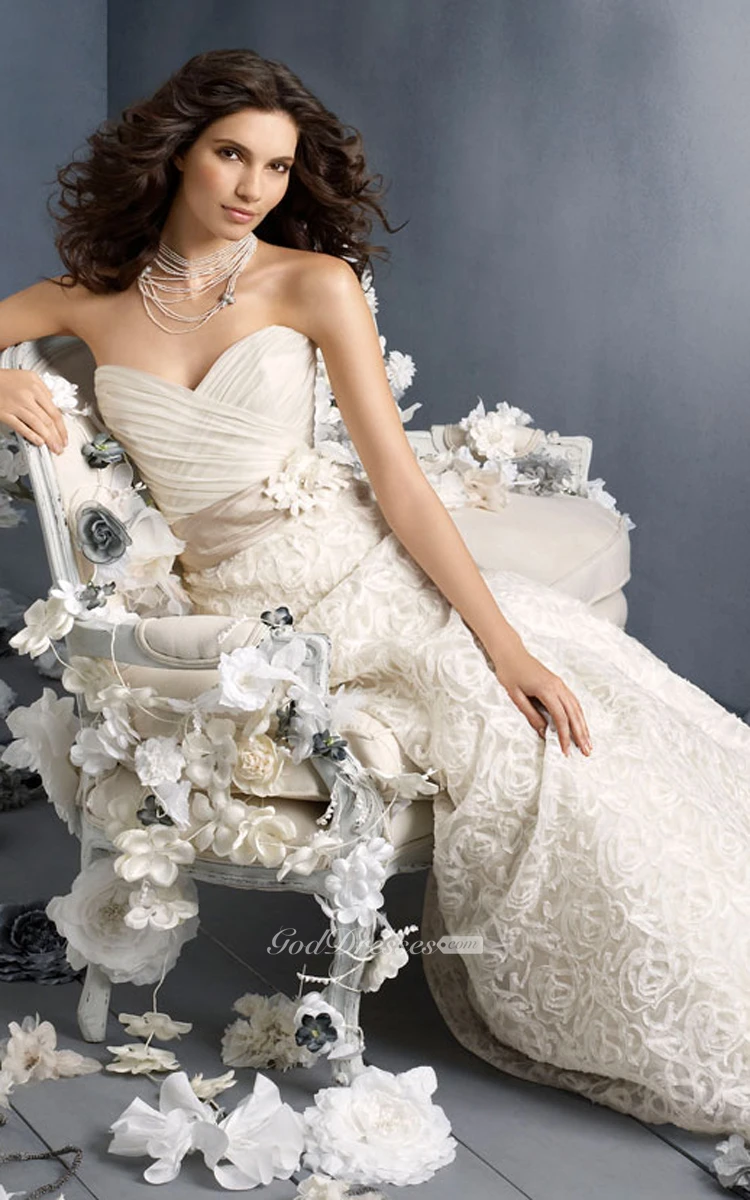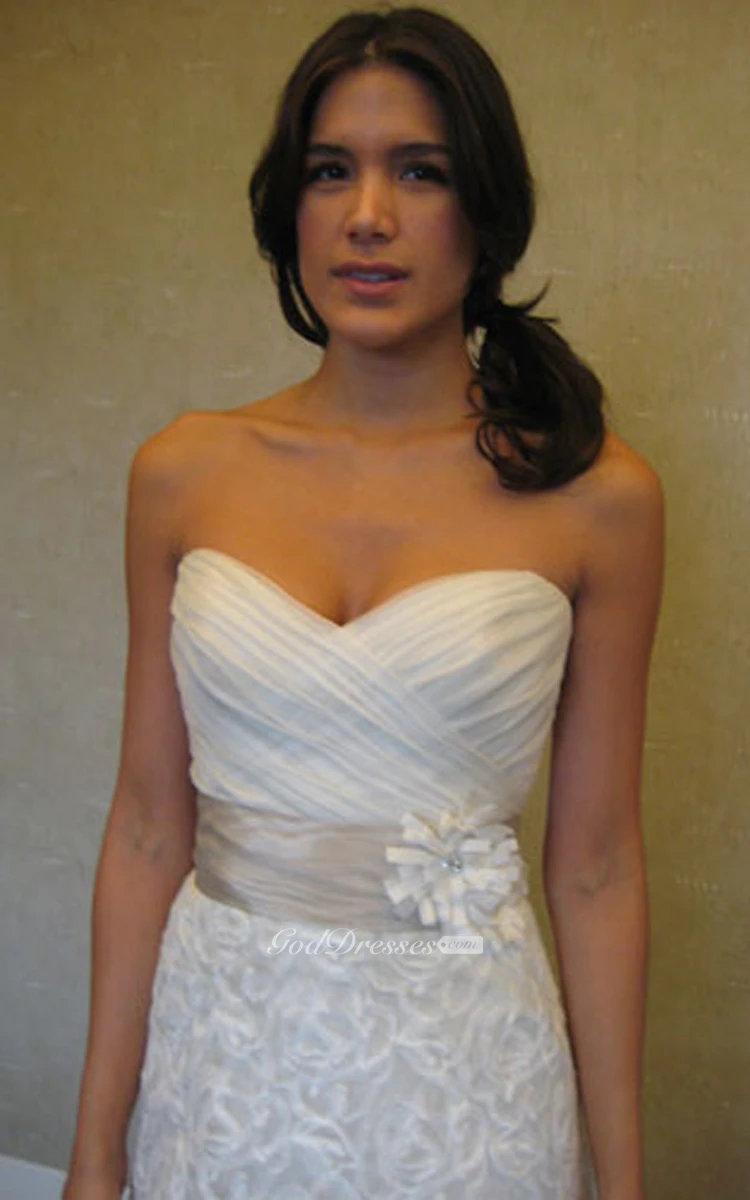 Alluring Crisscross Ruched Bodice Organza Gown With Floral Embellished Waist