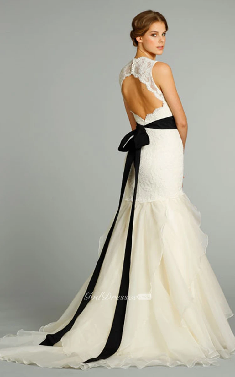 Alluring Sleeveless Lace Bodice Organza Dress With Bow at Back