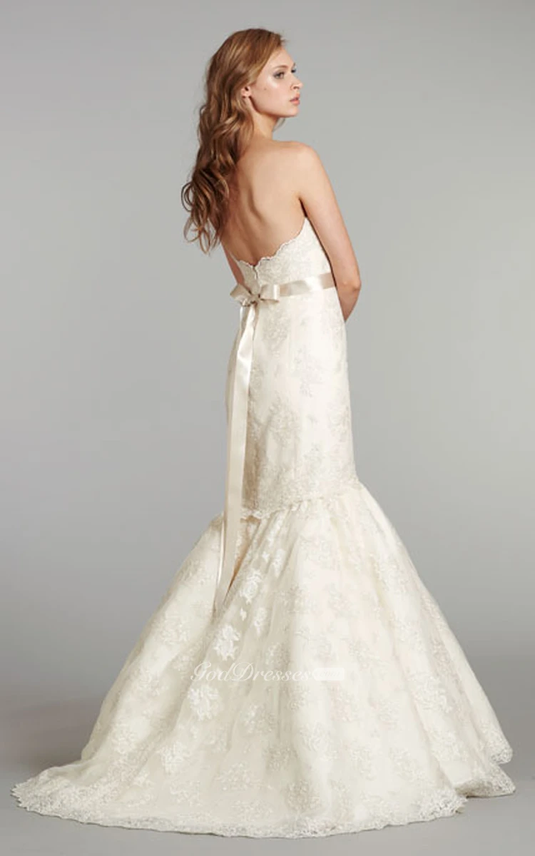 Alluring Strapless Embroidered Lace Dress With Crystal Beaded Belt