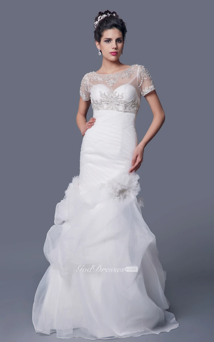 Amazing A-line Organza Wedding Dress With Beaded Jacket